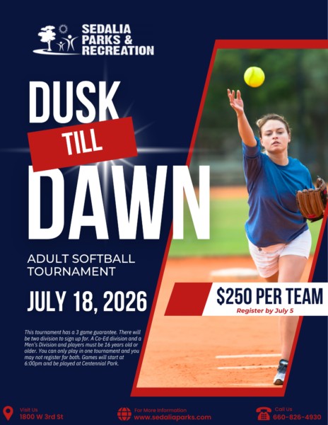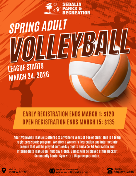 To register for our programs, stop by the Parks and Recreation Office or call (660) 826.4930.
