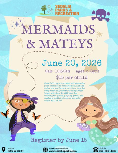 To register for our programs, stop by the Parks and Recreation Office or call (660) 826.4930.