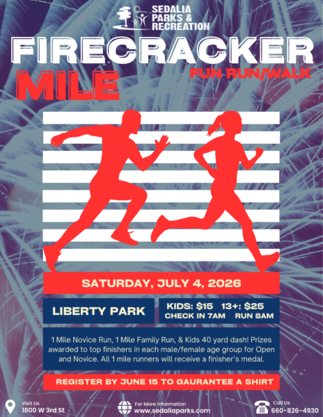 To register for our programs, stop by the Parks and Recreation Office or call (660) 826.4930.